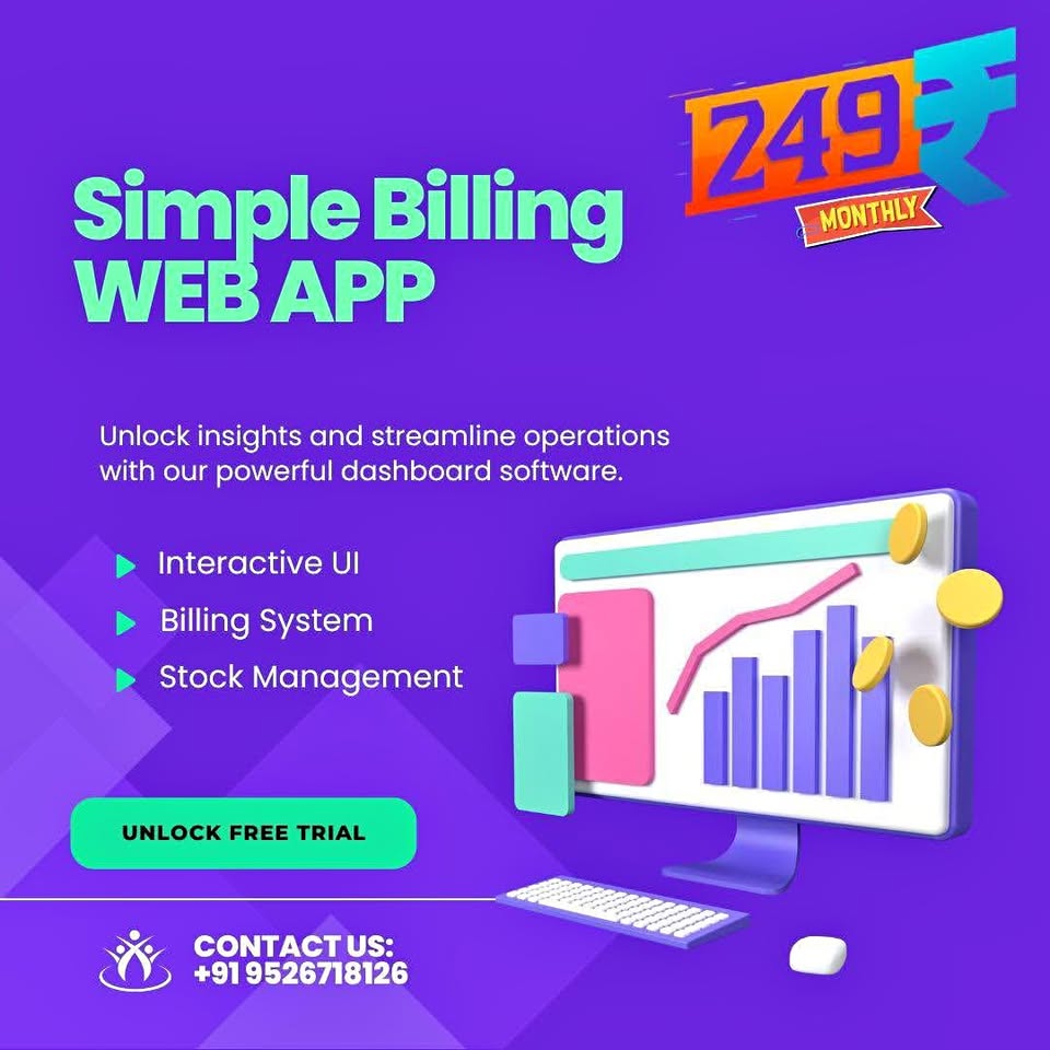 Manage your sales, inventory, and invoices with ease using our simple & powerful billing software. Designed for shops, resellers, wholesalers, and online sellers, it makes billing fast, accurate, and hassle-free. ⨠Features: